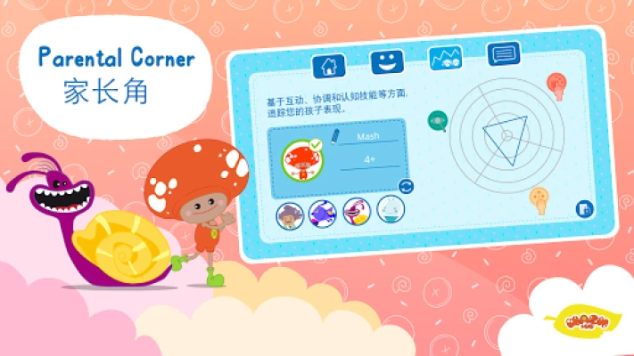 Mash&Co不仅仅是一场冒险,更是一个陪伴孩子成长的智慧平台。我们为家长们精心设计了专属功能,可以实时追踪宝贝在"识别"、"协调"和"互动"三大认知技能上的进步轨迹。通过自由探索式的游戏模式,Mash&Co鼓励孩子们大胆发挥想象力与创造力,允许他们在故事的进程中自由穿梭,记录并讲述自己的独特故事。一个充满活力、色彩斑斓的Mash&Co世界正等待着您的到来,准备好与Mash和Periwinkle一起,迎接无穷无尽的惊喜与探险吧!